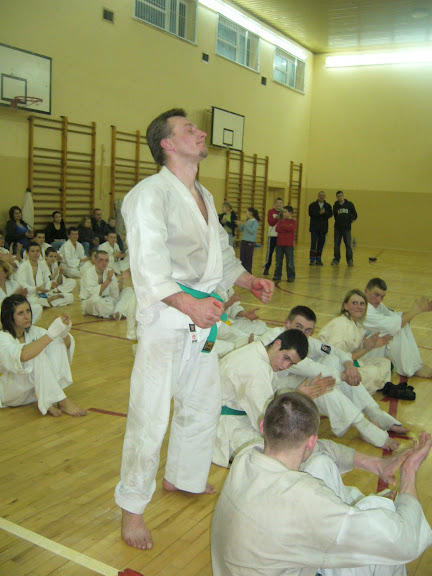W dniu 11.01.2007 r. w Limanowskim Klubie Kyokushin Karate odbył się egzamin na stopnie kyu!. Na sali zgromadziły się nie tylko dzieci, ale także starsi karatecy. Egzamin rozpoczął się o godzinie 18.30 i zakończył się ogłoszeniem wyników o godzinie 20.30. W Dojo młodym adeptom Kyokushin Karate dopingowali rodzice! Poniżej przedstawiam kilkanaście zdjęć z egzaminu.