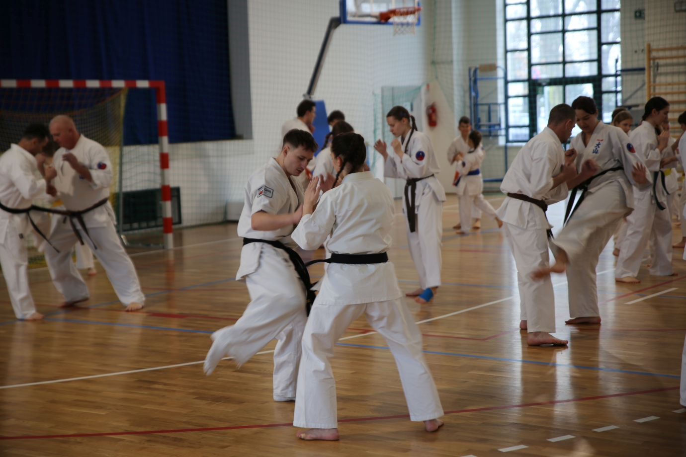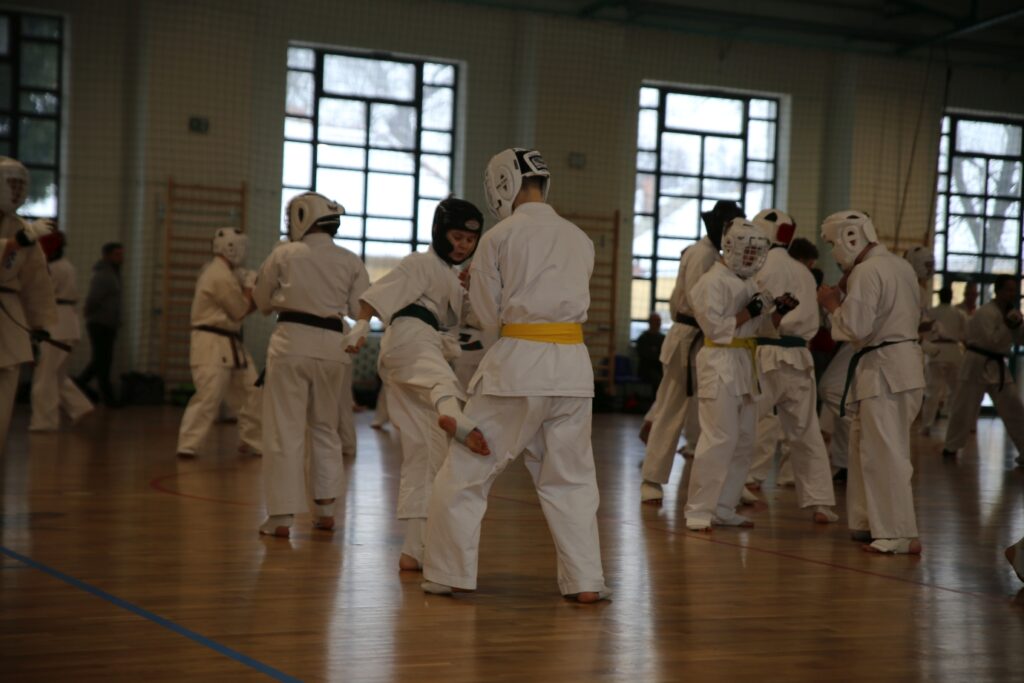 Po wspólnej, intensywnej rozgrzewce zawodnicy przystąpili do walki w formule kumite. Sparingi były doskonałą okazją do zdobywania nowych doświadczeń, wymiany umiejętności oraz sprawdzenia się w walce z zawodnikami z innych klubów. Tego typu spotkania niewątpliwie zaprocentują podczas zbliżających się turniejów.